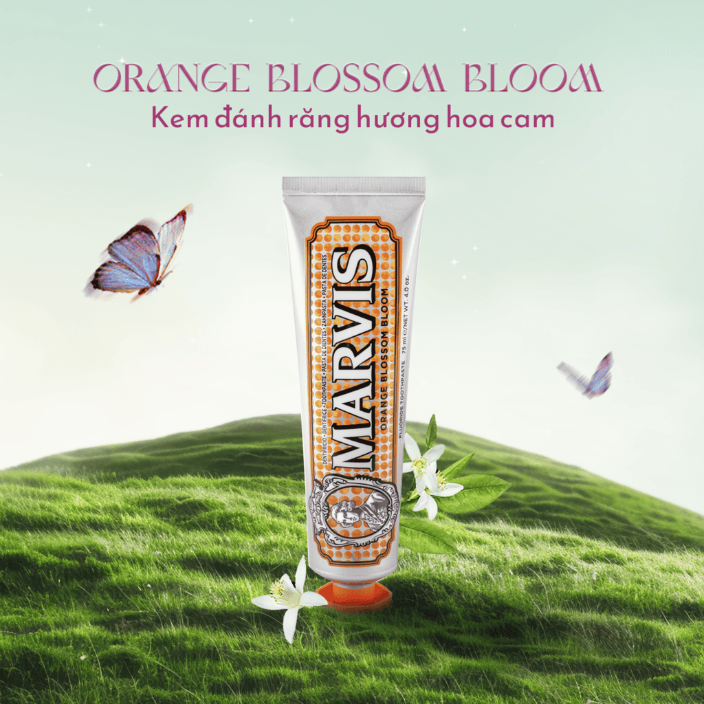 Hương hoa cam thơm lừng, cộng hưởng cùng vị the mát của bạc hà châu Âu, kem đánh răng Marvis Orange Blossom Bloom sẽ khiến người ấy rung động chỉ sau vài giây “thưởng thức”.