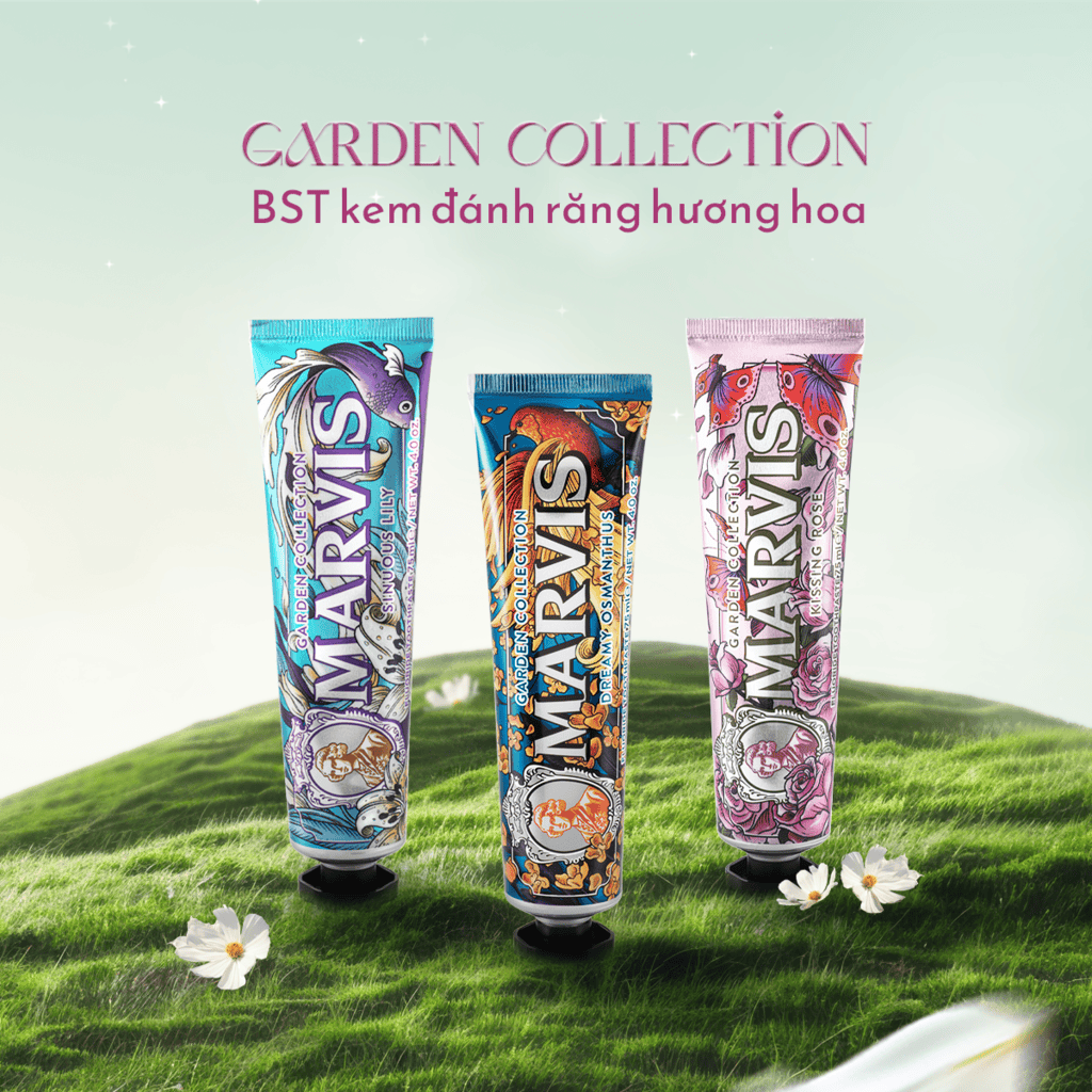BST kem đánh răng Marvis hương hoa phiên bản giới hạn dành riêng cho tâm hồn yêu hoa: 1 - Sinuous Lily (Hương hoa ly thanh khiết), 2 - Dreamy Osmanthus (Hương hoa mộc tê thanh tao), 3 - Kissing Rose (Hương hoa hồng Bulgaria quyến rũ).